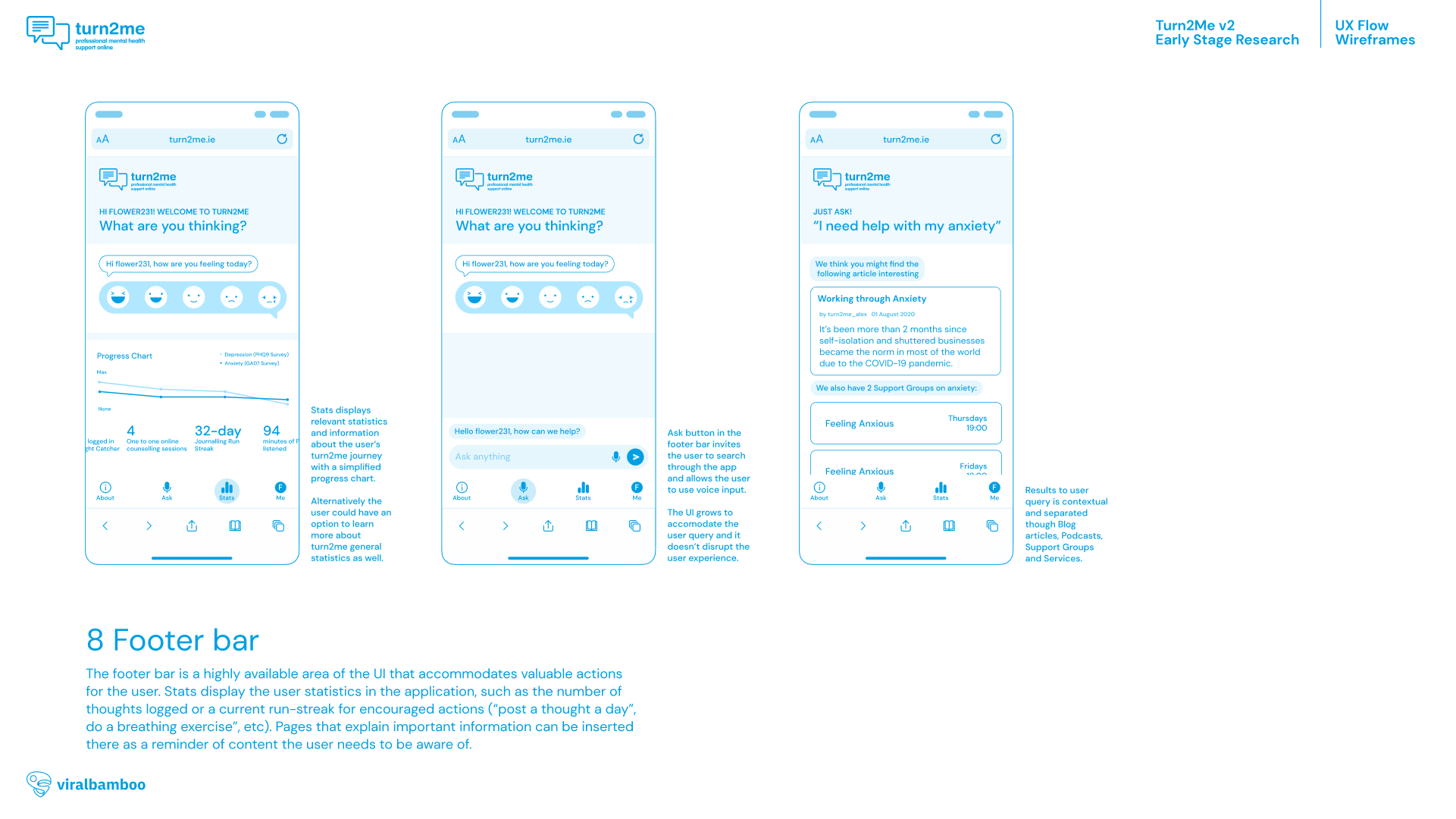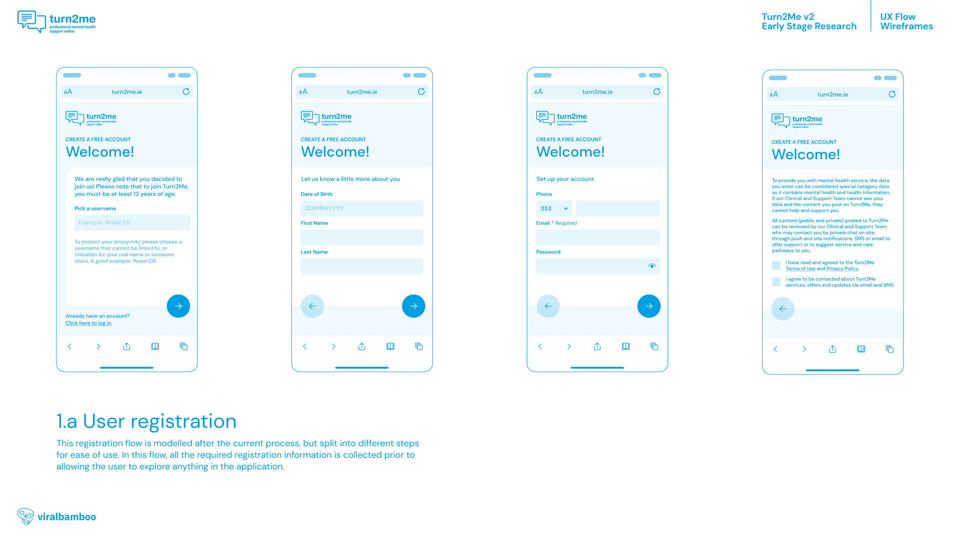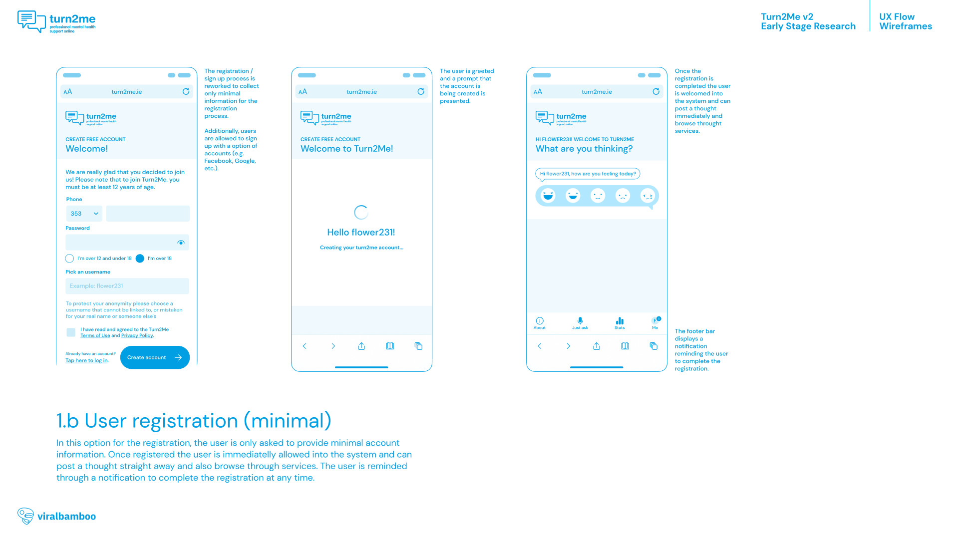 Turn2Me is an Irish mental health charity that delivers professional counselling services online. The Turn2Me app is a web-based application in which users can apply for free counselling, join support groups, and also benefit from day-to-day peer support in a moderated feed of public thoughts. Through its innovative “Thought Catcher” feature users are able to seek and provide one another support by commenting, reacting, and flagging unsafe content for review.